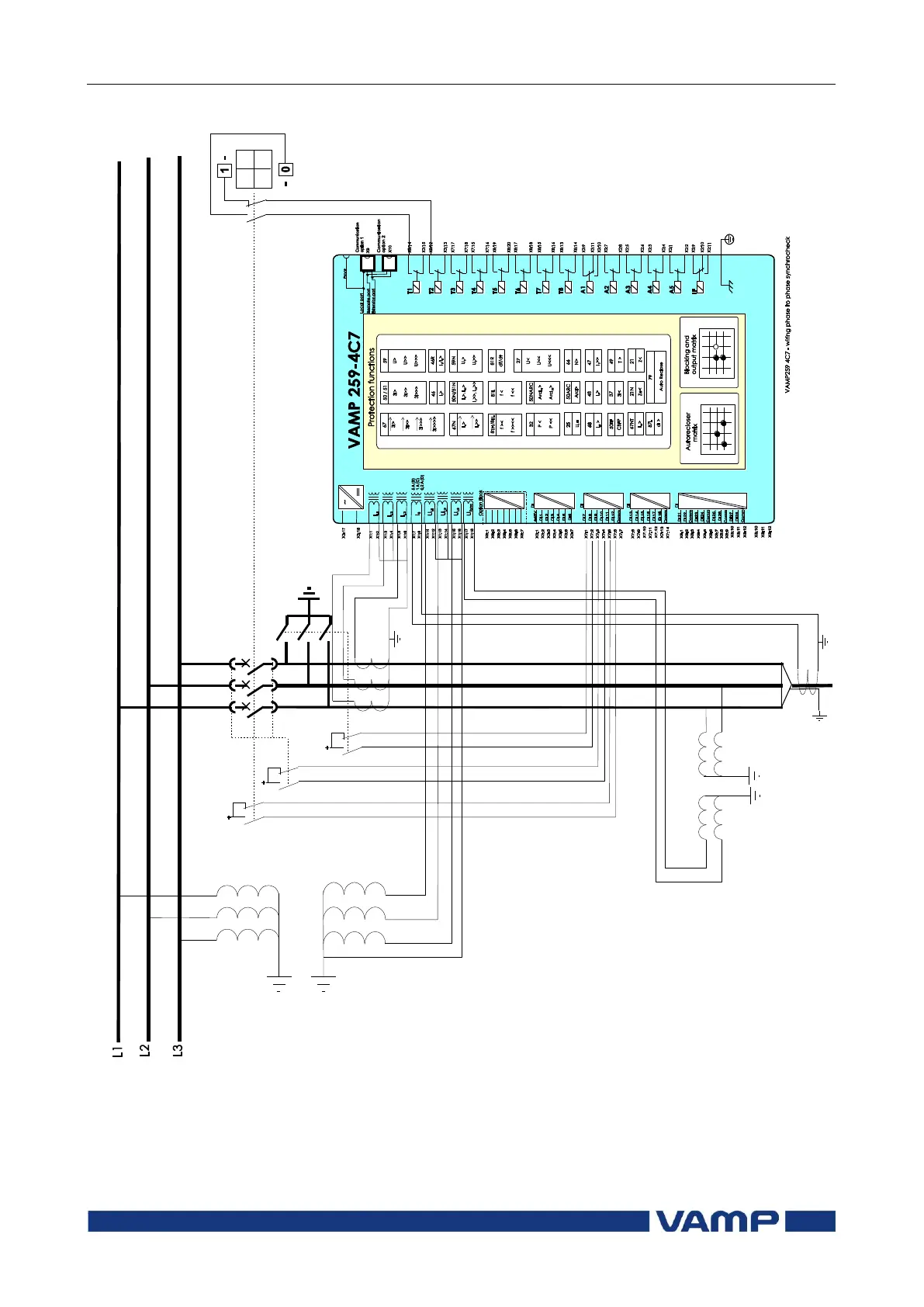 Figure 8.9-2 Connection example of VAMP 259-4C7 with a synchrocheck