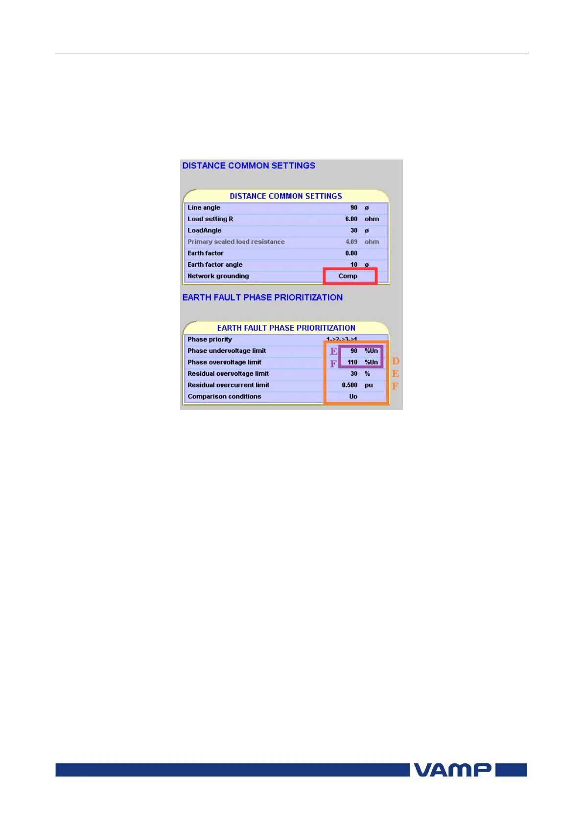 DEF –algorithm in Vamp 259 –relay is enabled together with