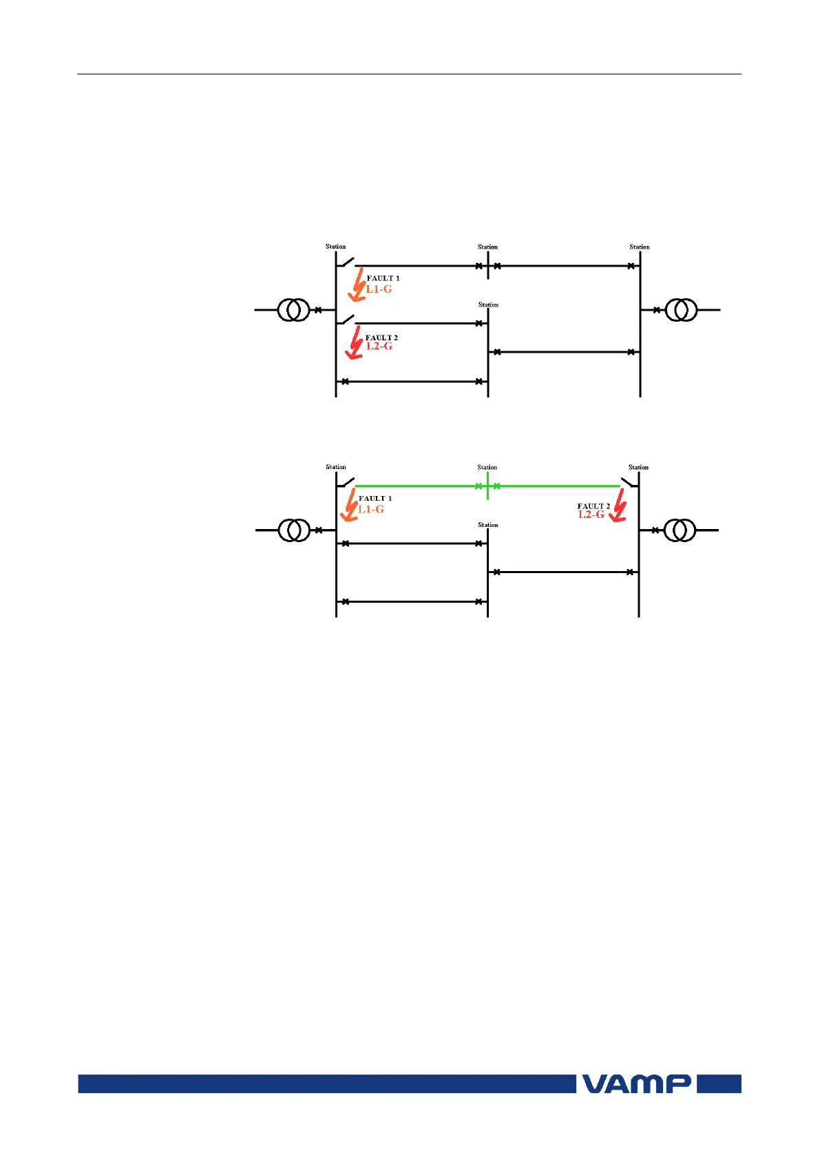 Figure 2.4.3-2 Two earth faults very close to the incomers at different ends