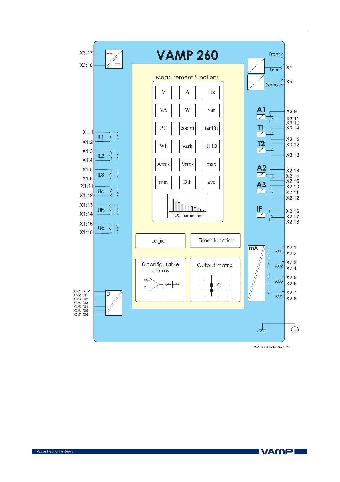 Figure 4.6-2 Block diagram of the power monitoring unit VAMP 260, with