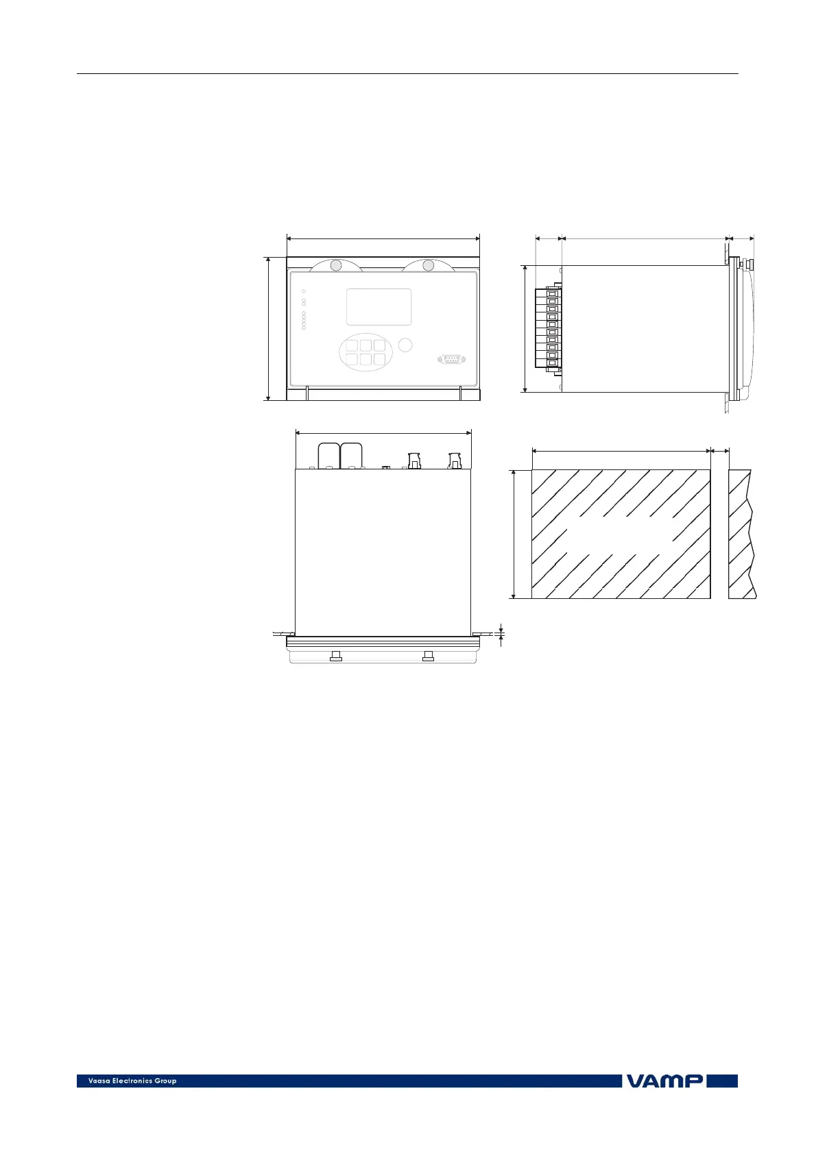 Figure 6.1-1. Dimensional drawing and panel cutout dimensions.