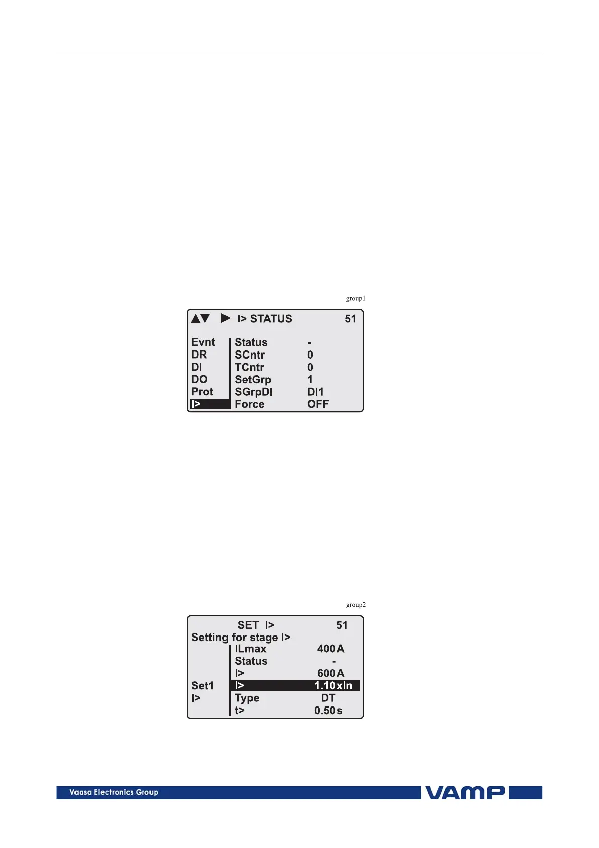 Figure 2.2.3-1 Example of protection submenu with setting group