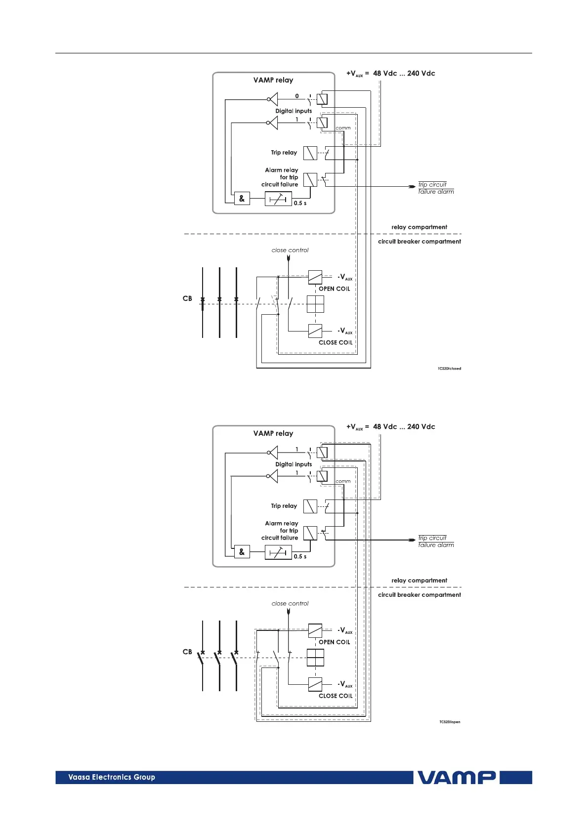 Figure 7.3.2-1 Trip circuit supervision with two digital inputs. The CB is