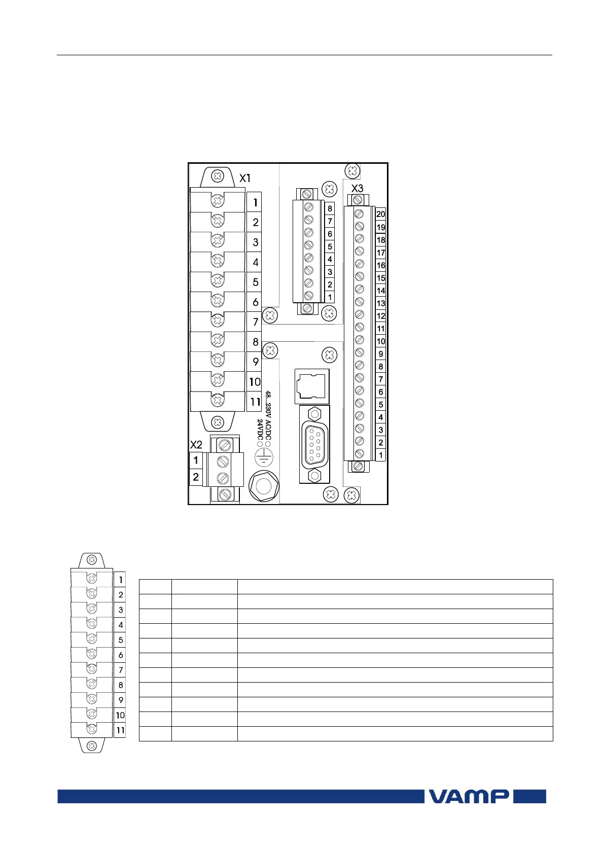 Figure 8-1 Connections on the rear panel of the VAMP 59.