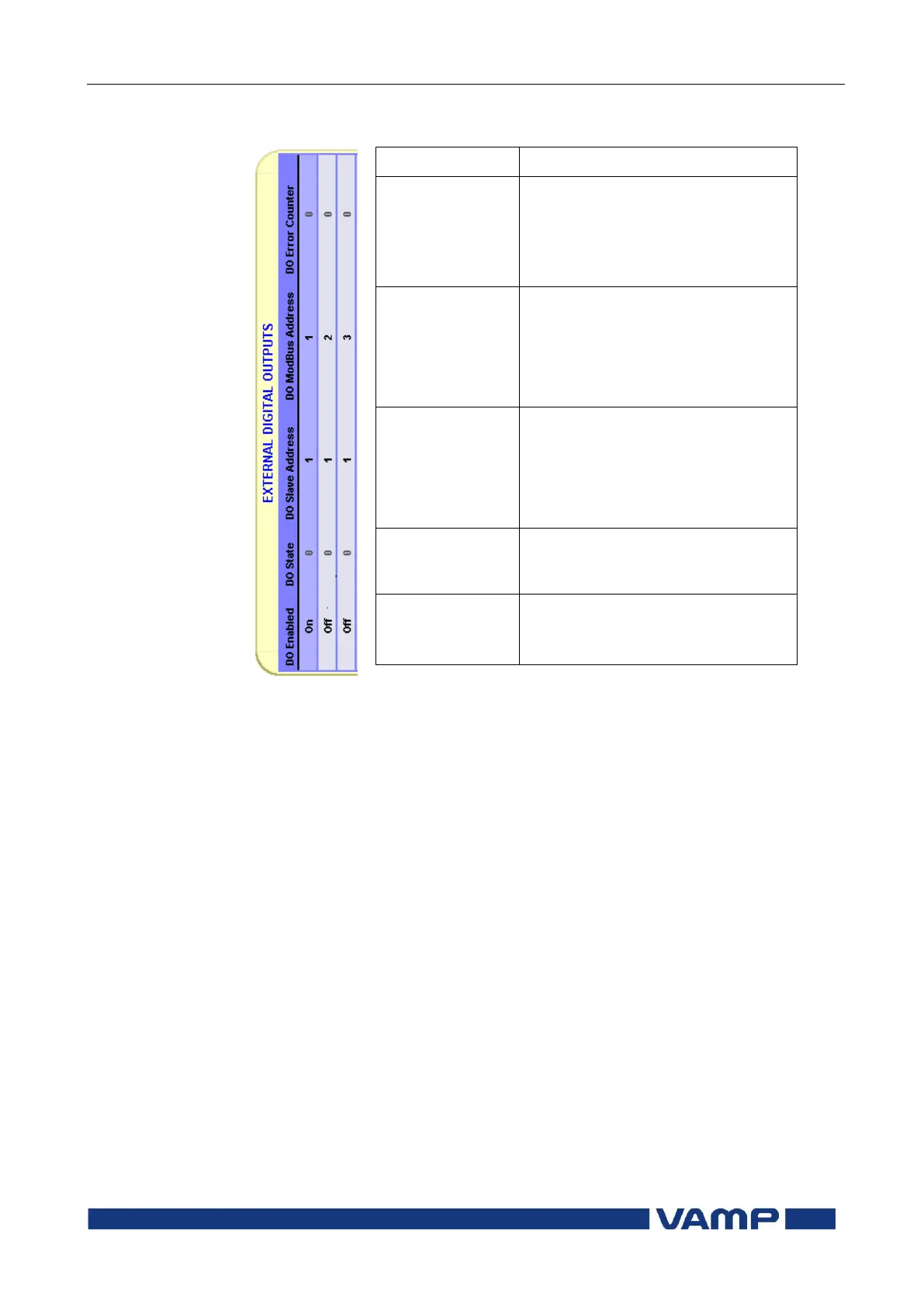 External digital outputs configuration (VAMPSET only)