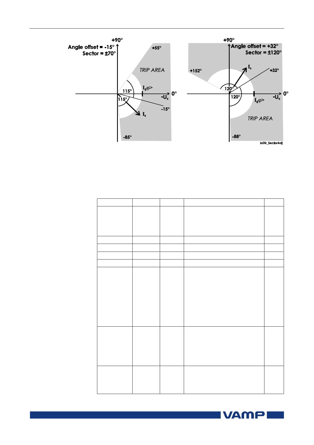 earth fault stages in sector mode. The drawn I0 phasor in both figures is