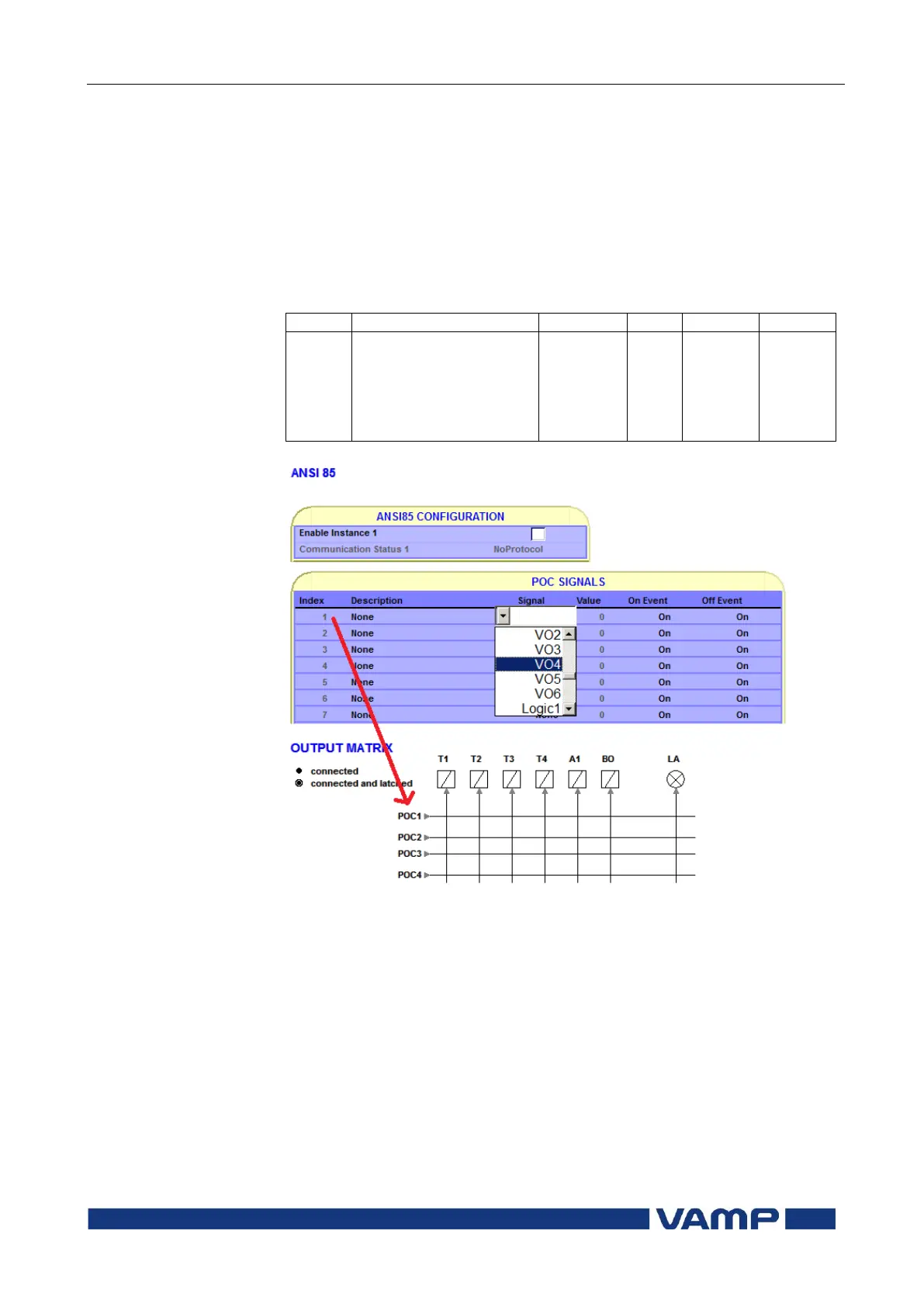 List of POC –signals between the relays (ANSI 85):