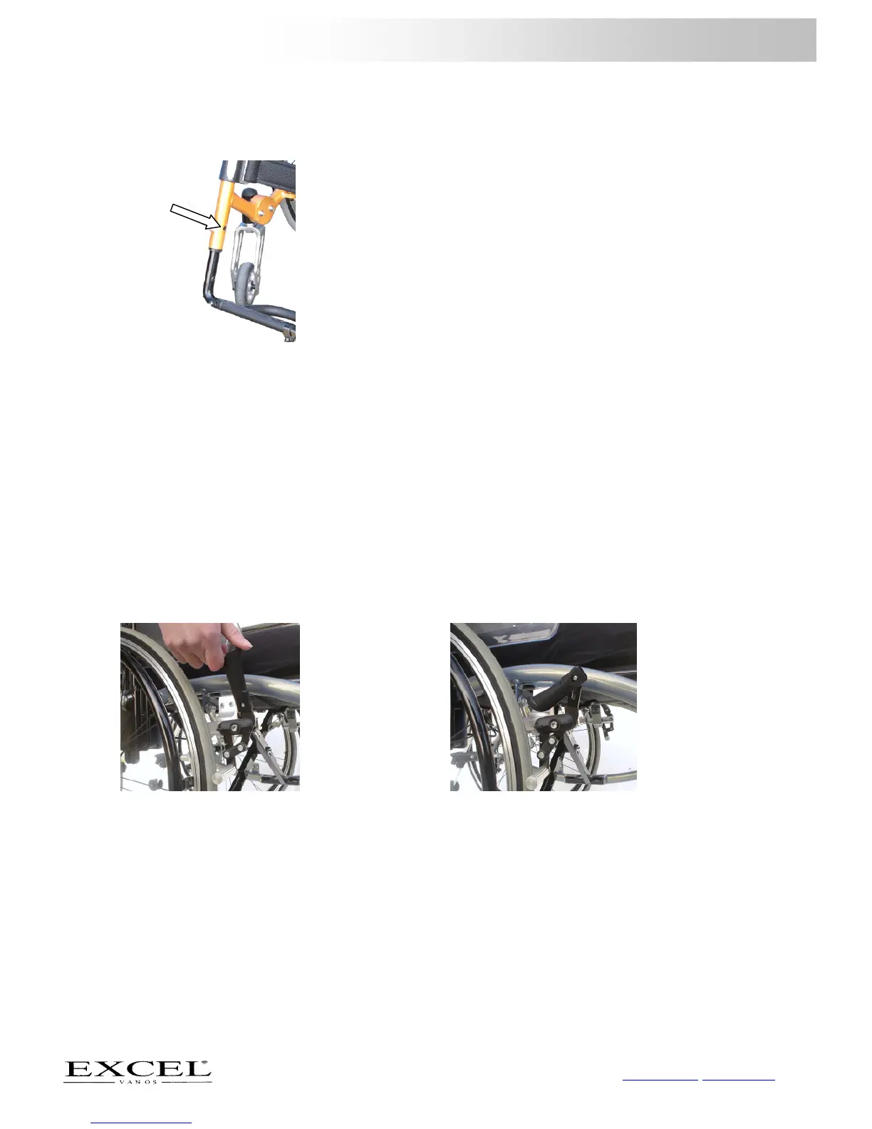 - Push the lever forward until you hear the click, this confirms that the wheelchair has been put on the