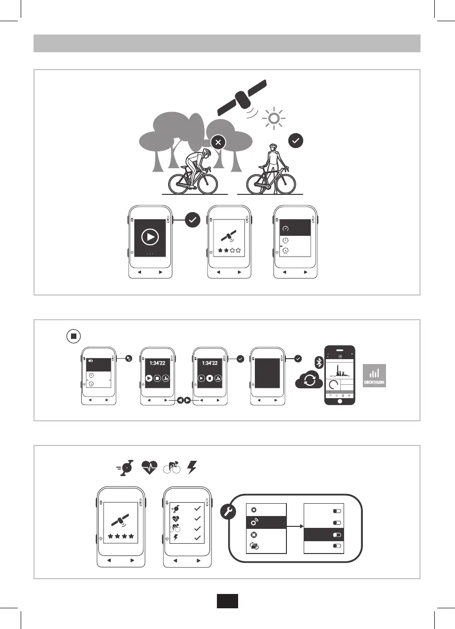 Punei o cursă pe pauză sau oprii-o apăsând butonul OK. Putei vedea datele GPS i detaliile cursei îm aplicaia Decathlon Connect. Pe durata sincronizării păstrai
