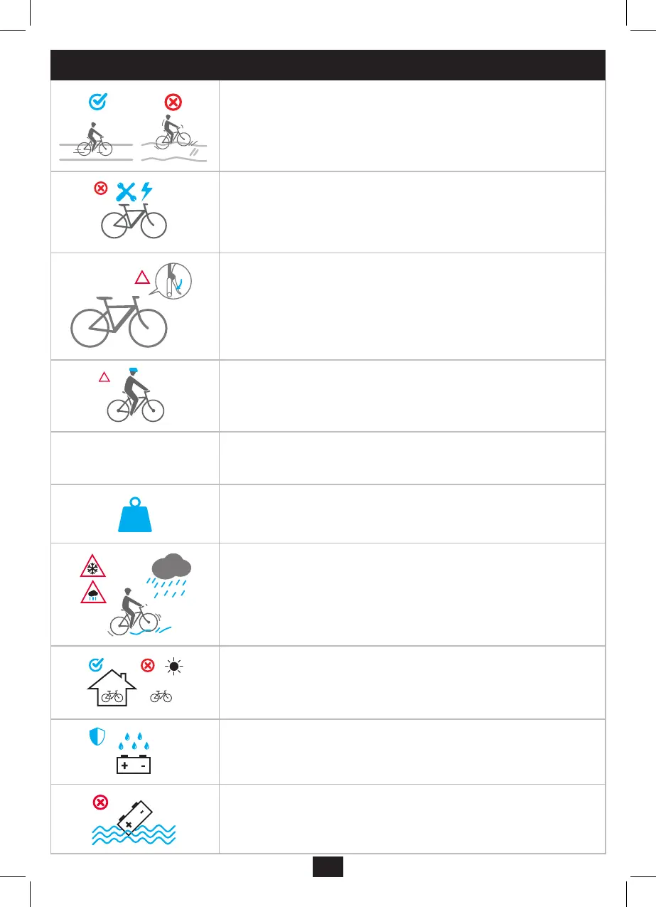 Велосипедті немесе электрлік құрамдастарды суға батыруға болмайды.