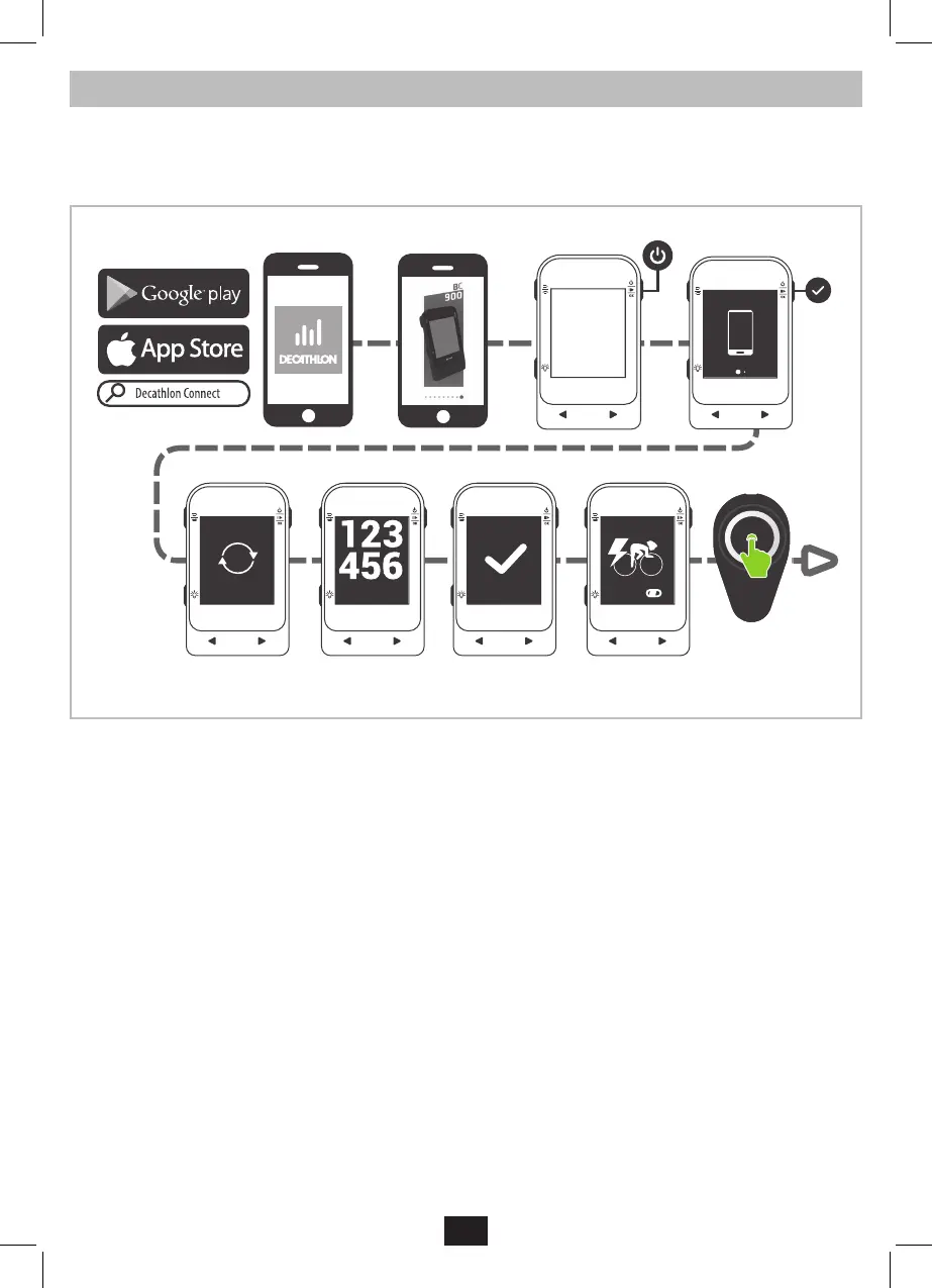 Загрузите приложение Decathlon Connect на смартфон, запустите его и следуйте инструкциям, показанным на экране.