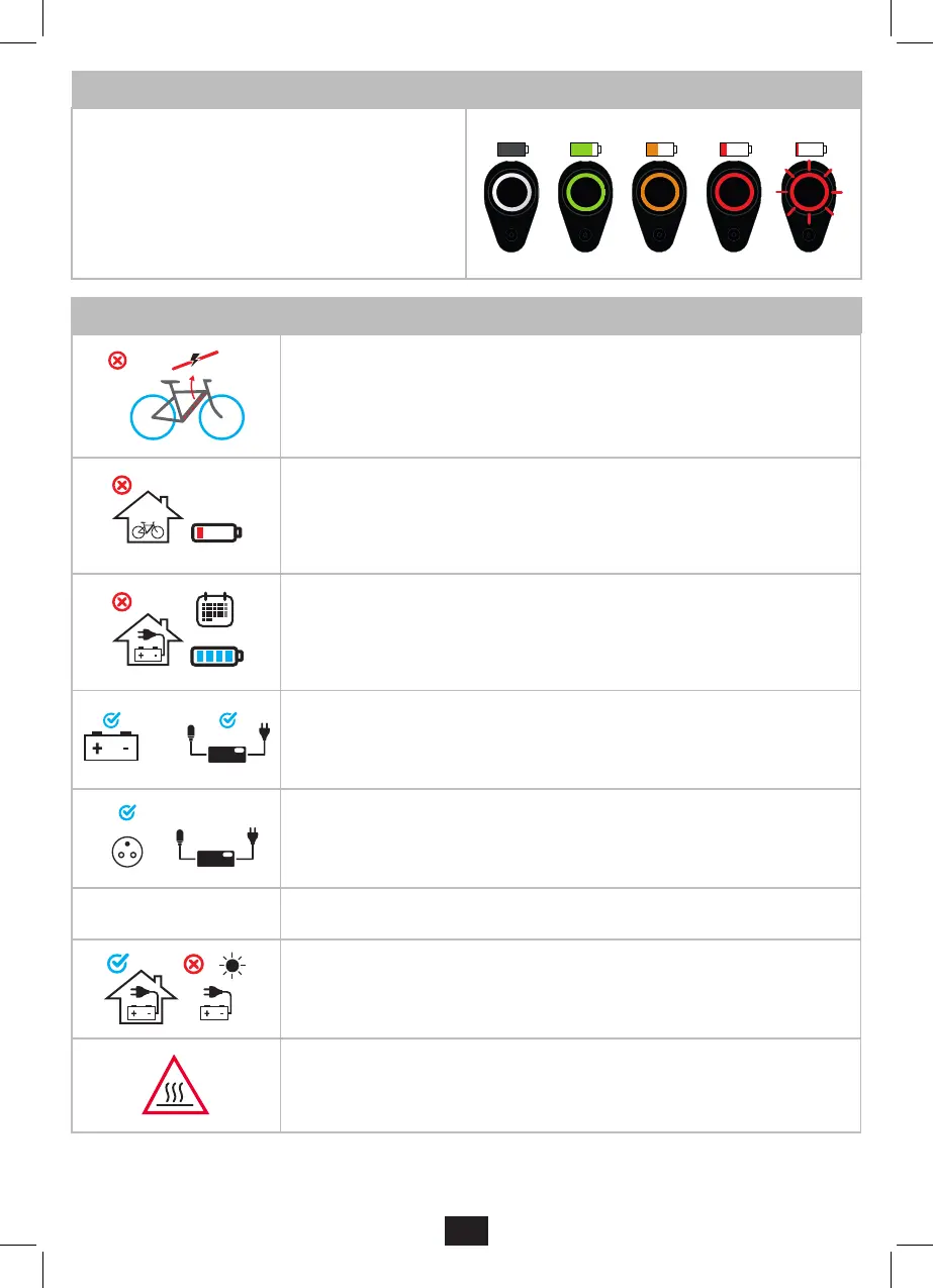 存放自行车时,请确保电池有电(不是红灯),否则会发生电池深度放电,由