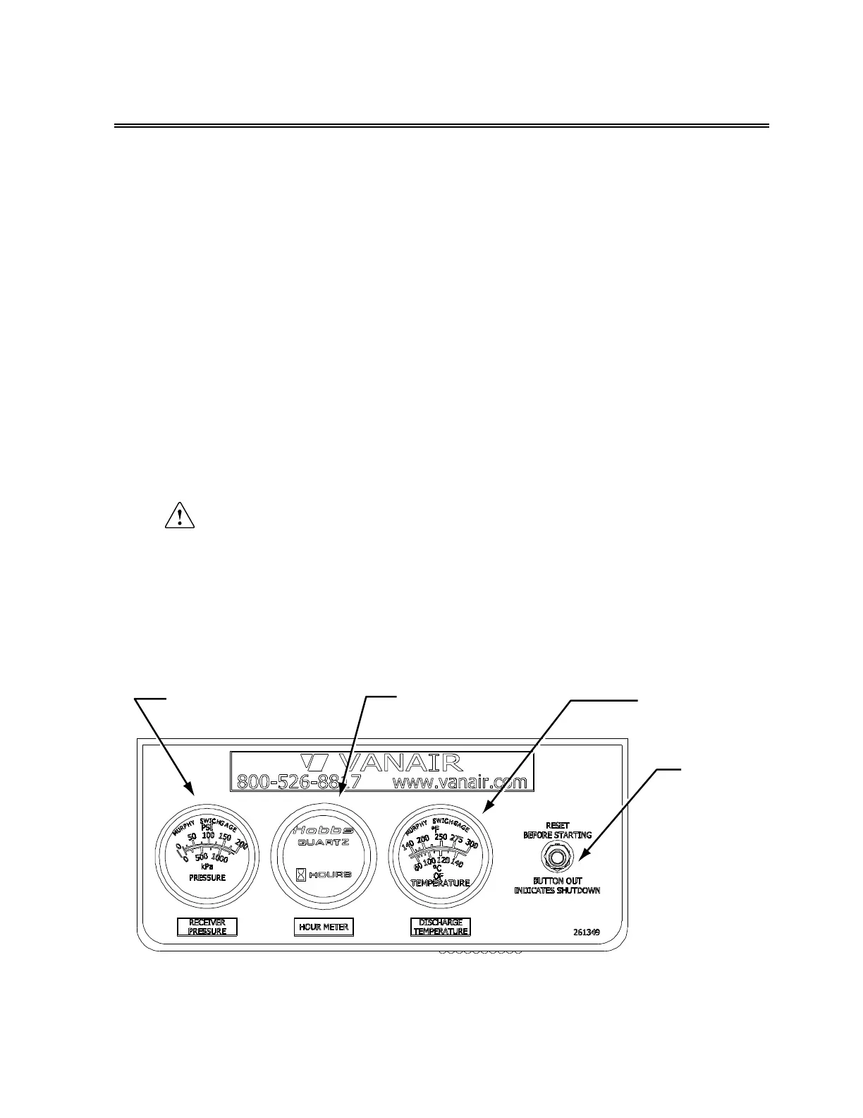 an hour meter, a compressor discharge temperature gauge and reset button.