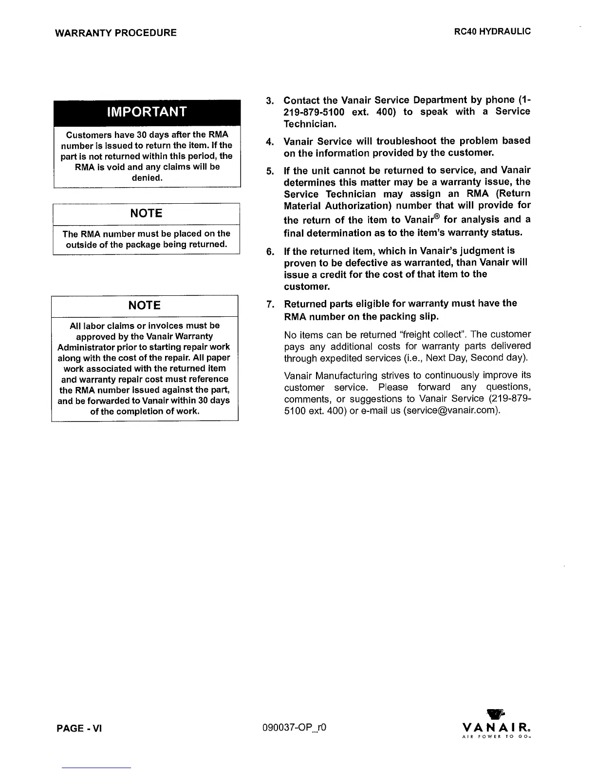 Vanair RC40 - Page 11