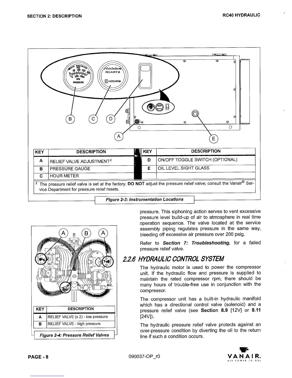 Vanair RC40 - SECTION 5: OPERATION; 5.2 OPERATING CONDITIONS; 5.3 FIRST TIME START-UP; 5.4 SHUTDOWN (FIRST TIME AND ROUTINE)