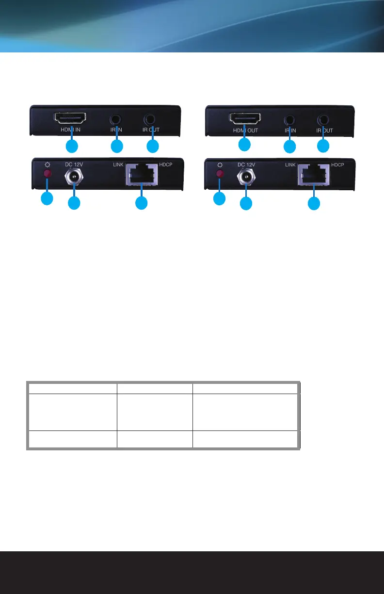 HDBaseT Extender features 2 indicators to show real-time operation information: