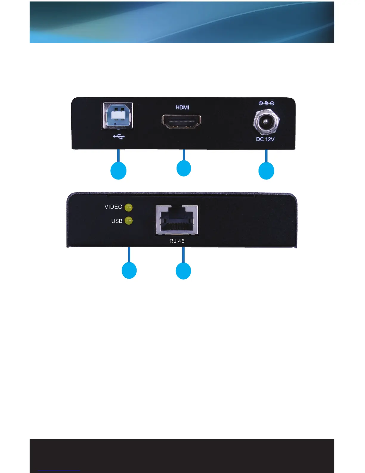 3. DC 12V: Connect the included power supply to power the extender unit (Powering this unit up