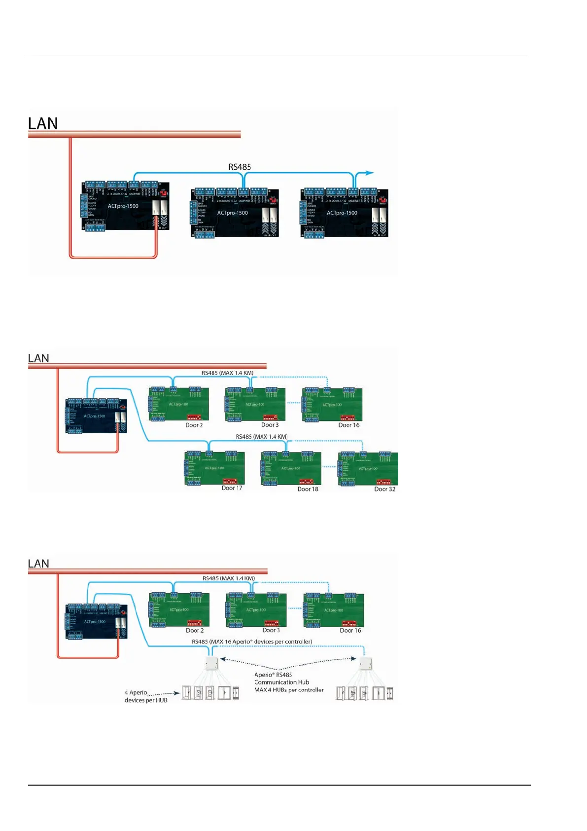 Door stations (ACTpro-100 or ACTpro-120) can be connected via RS485 network on doors network 1 and