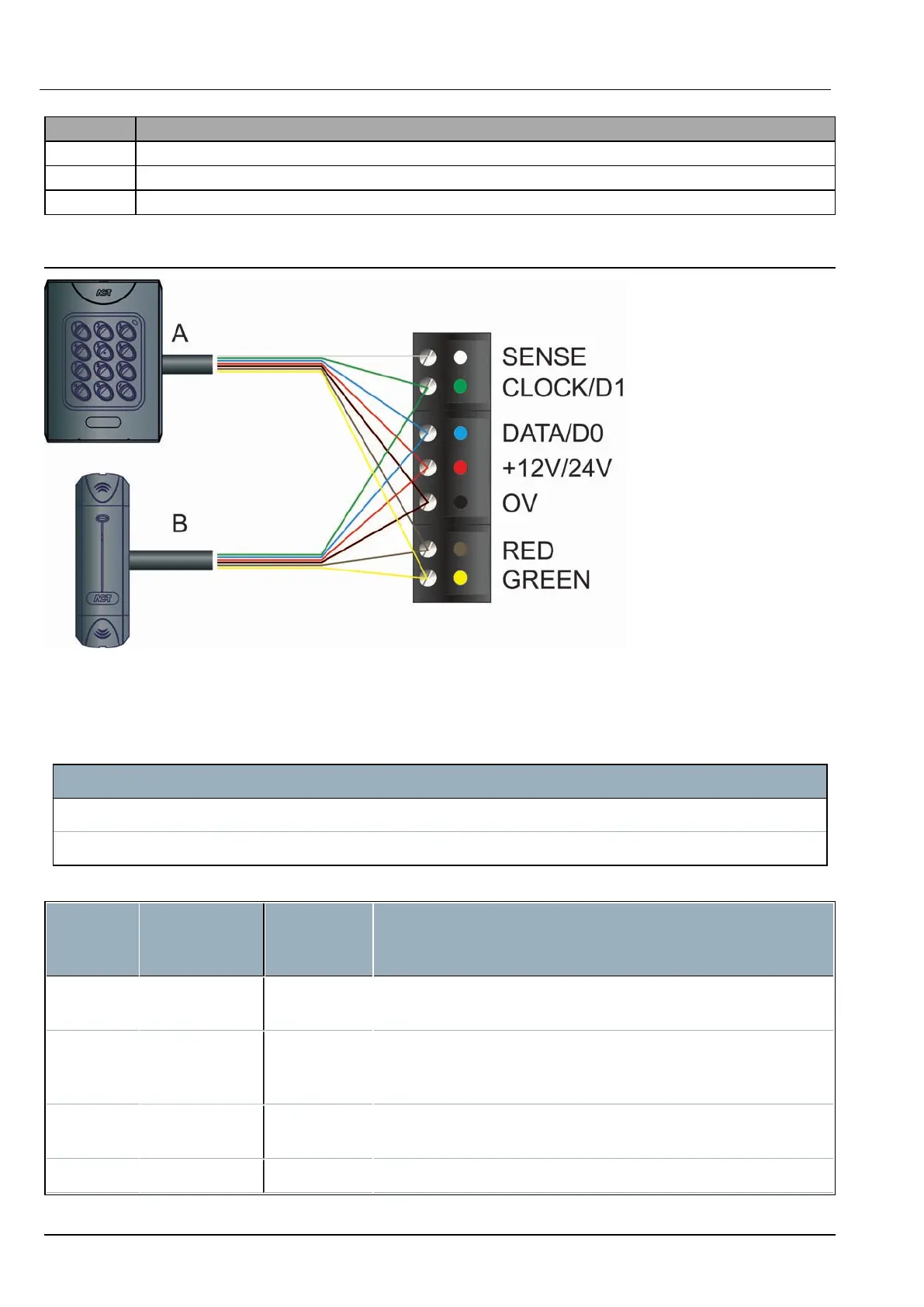 G Vanderbilt reader wire colour coding (Wiegand / Clock&Data interface).
