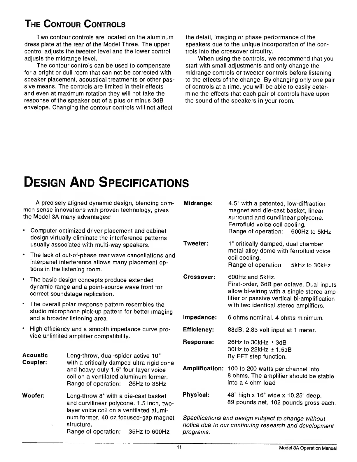 VANDERSTEEN 3A - THE CONTOUR CONTROLS