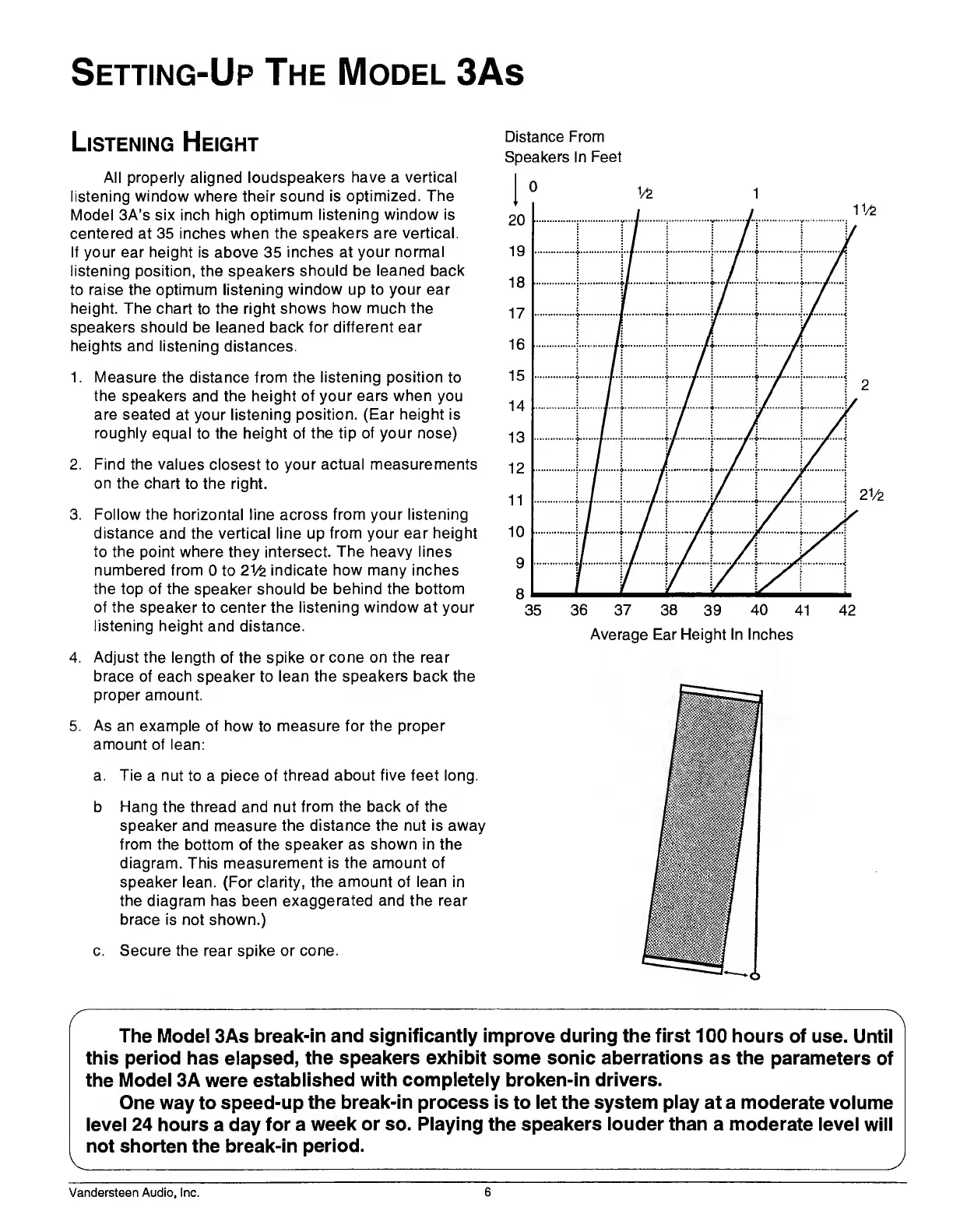 VANDERSTEEN 3A - SETTING-UP THE MODEL 3 AS; LISTENING HEIGHT