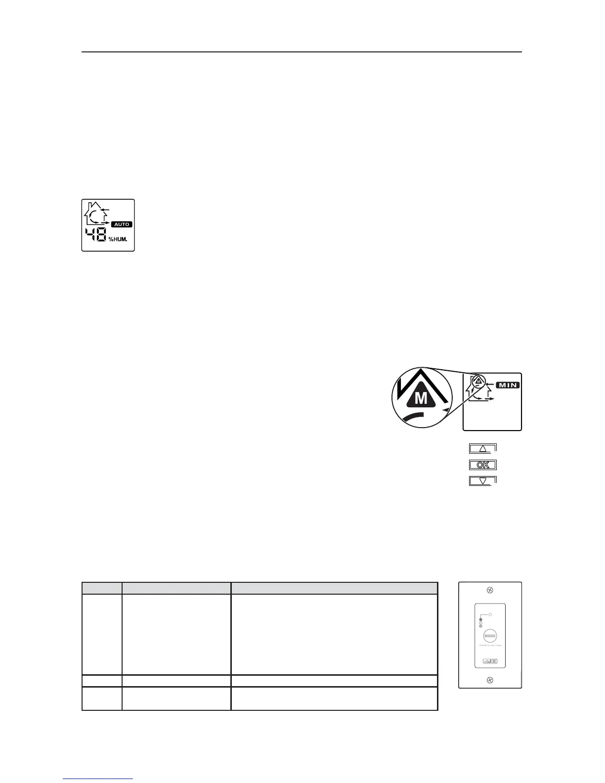 To turn off the dehumidistat override, press OK again. The RH and %HUM display will disappear