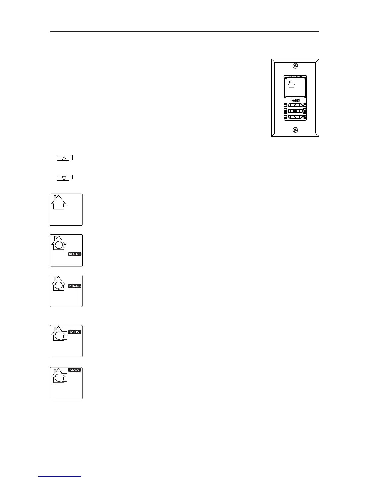 To change the operation mode of the ventilation unit, press the UP or DOWN arrow