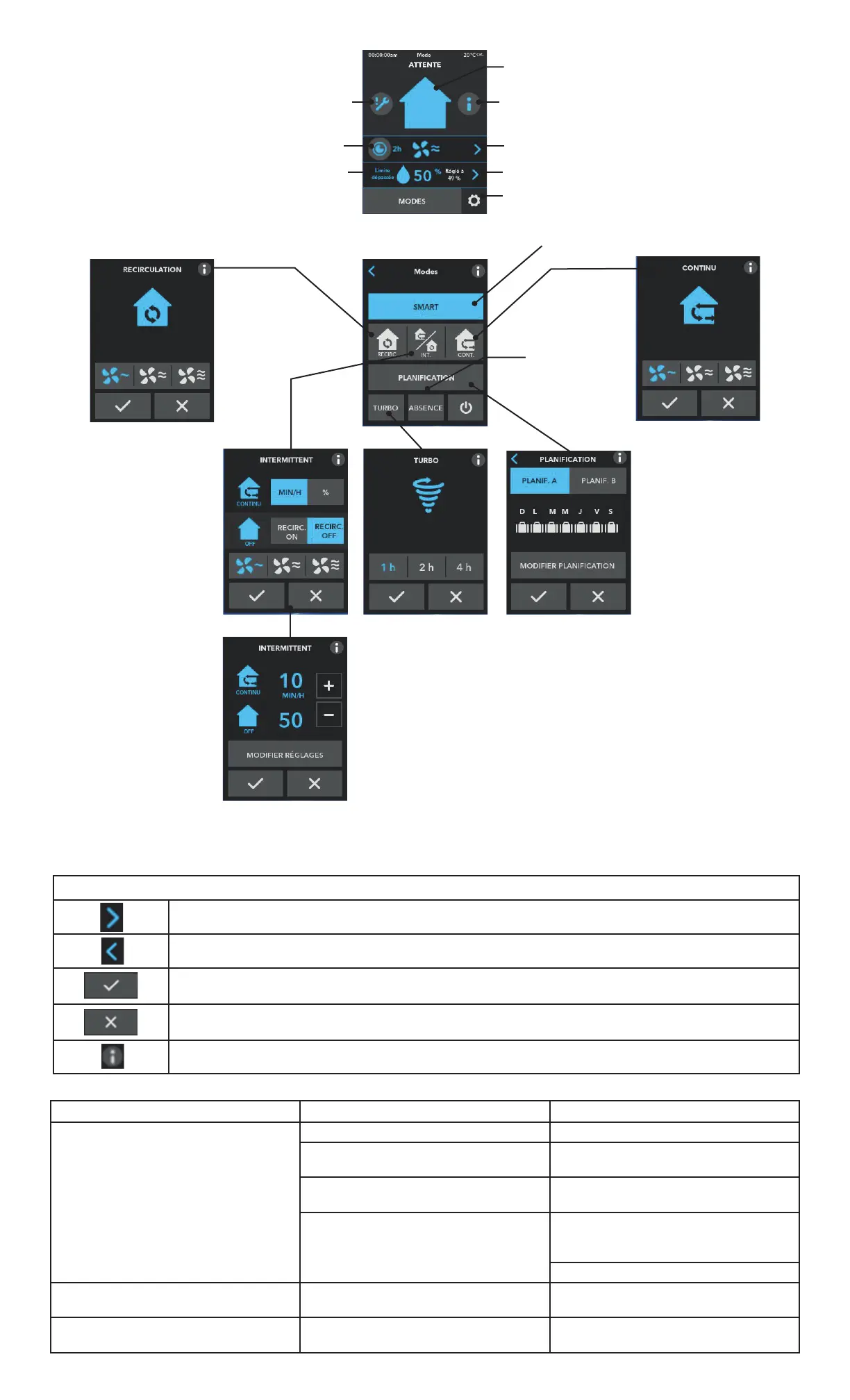 Pour obtenir plus d’information sur l’/les action(s) à effectuer sur l’écran correspondant