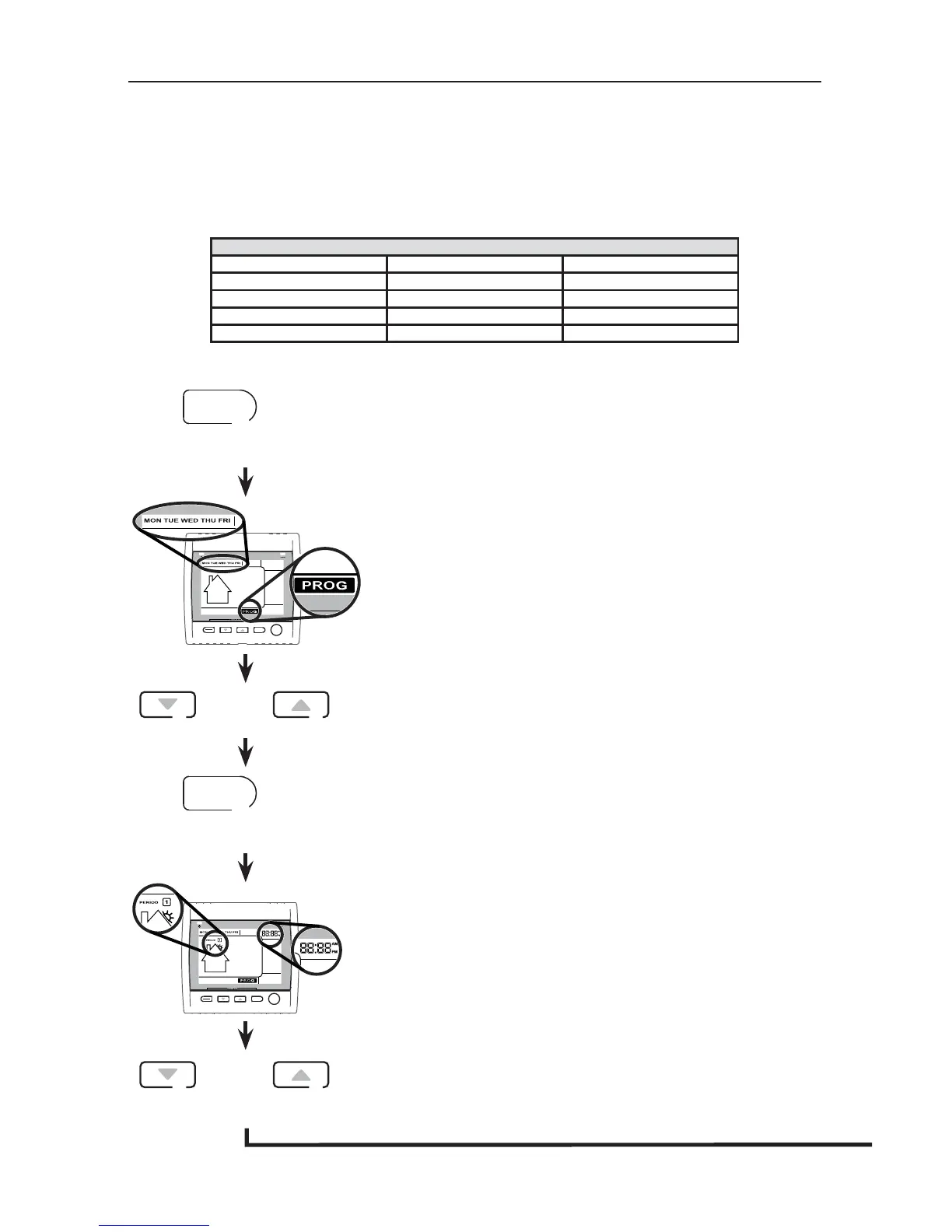 PROG (for Program) will appear on screen and week days will