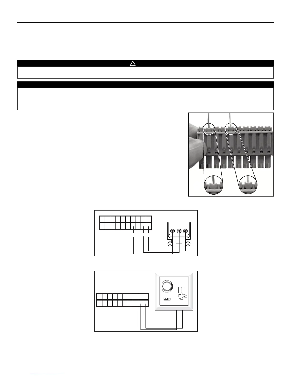 connection for main and optional wall controls. Check if all wires are correctly inserted in