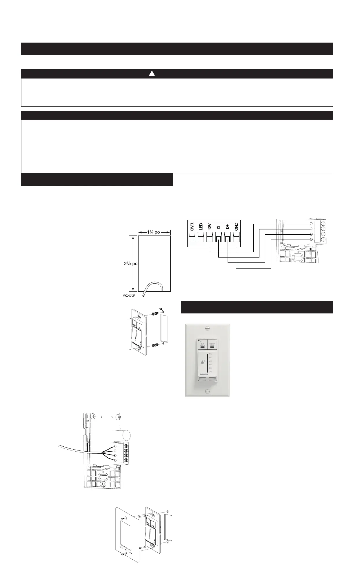 GUIDE D’INSTALLATION ET D’UTILISATION DE LA COMMANDE DÉSHUMIDISTAT