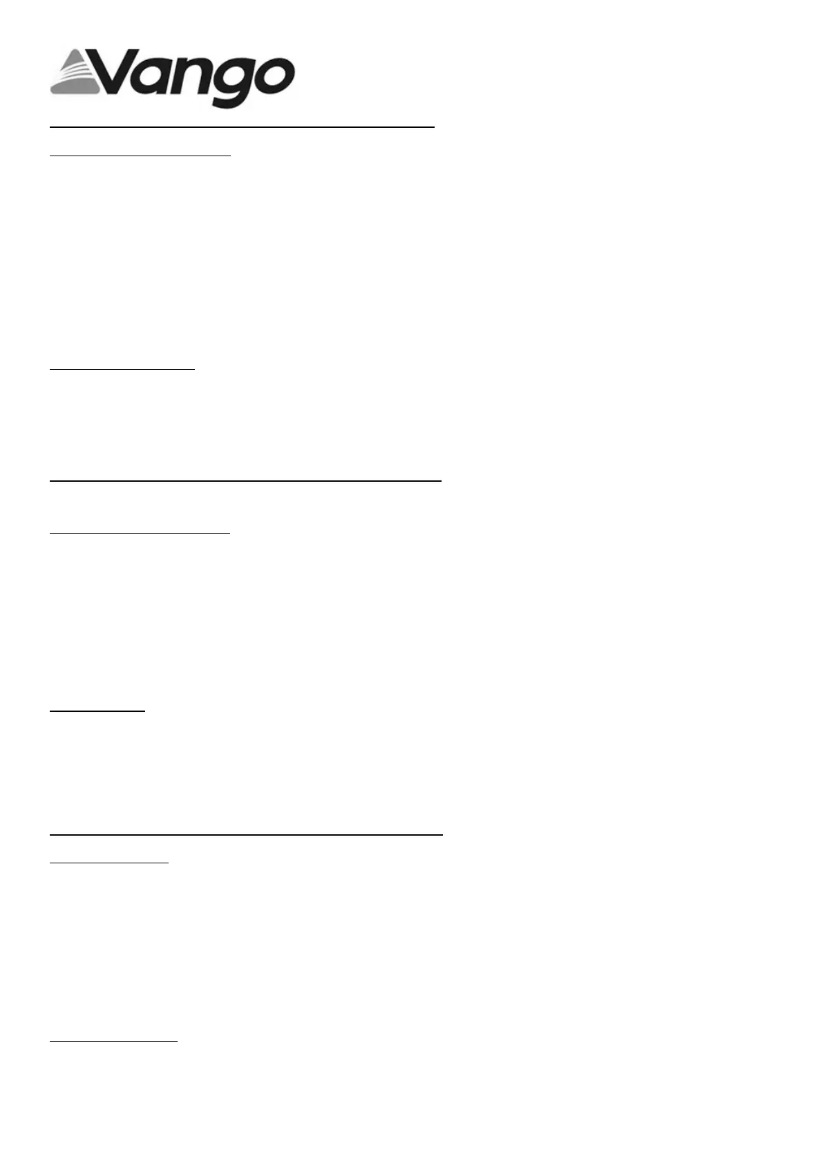 I teli parasole Vango sono progettati per essere usati in aree di campeggi pianeggianti e riparati. Non utilizzarli in zone ventose o campeggi esposti alle