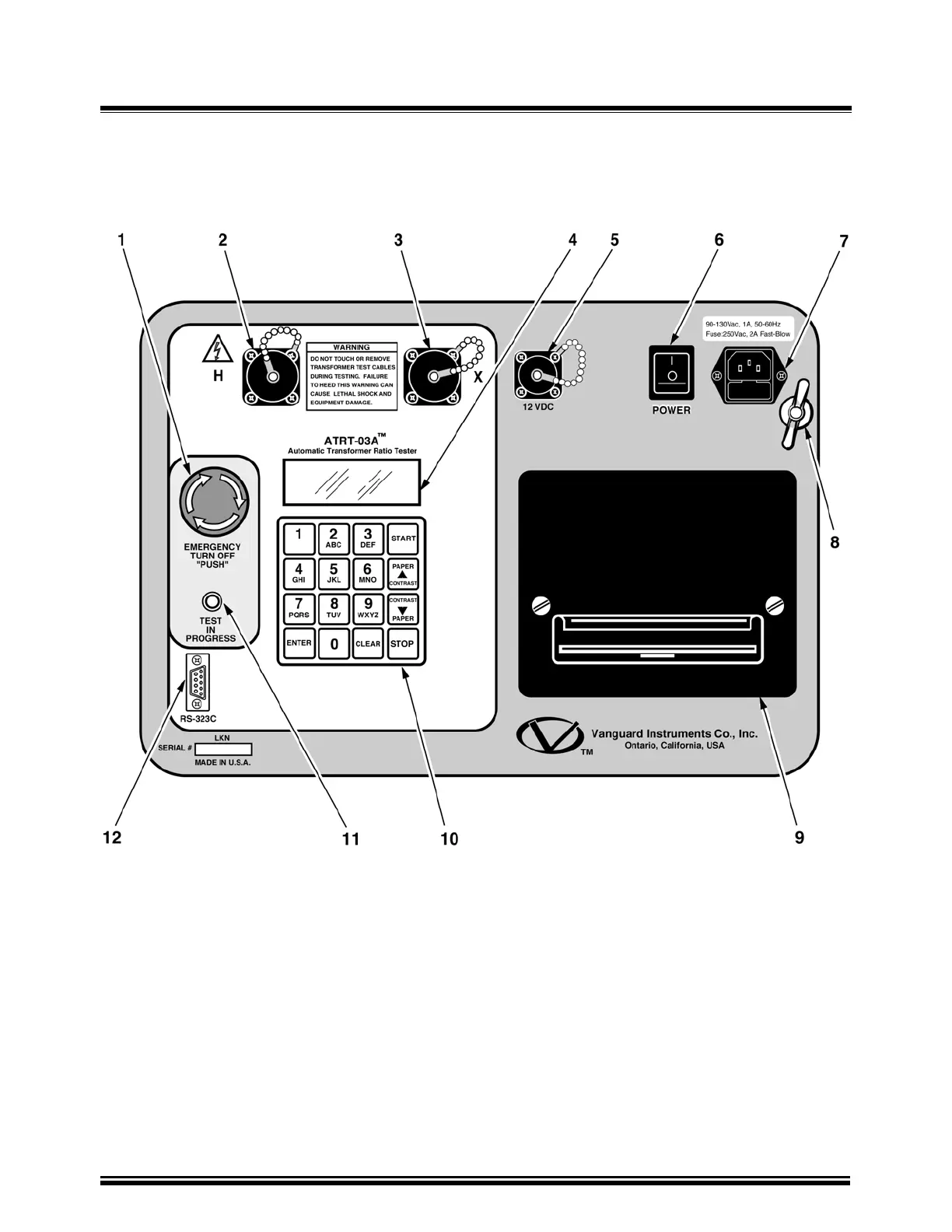 Vanguard Instruments ATRT-03 - ATRT-03 A Operating Controls and Indicators; Figure 7-2. Model ATRT-03 A Front-Panel Controls, Indicators, and Connectors