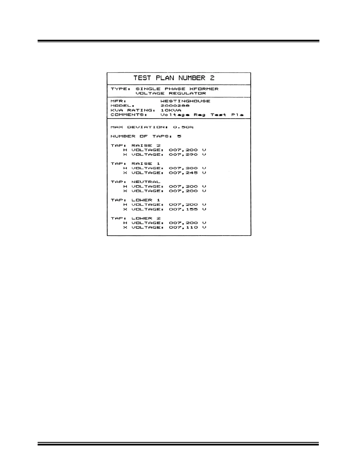 20-4. Typical Single Phase Voltage Regulator Test Plan Print Out