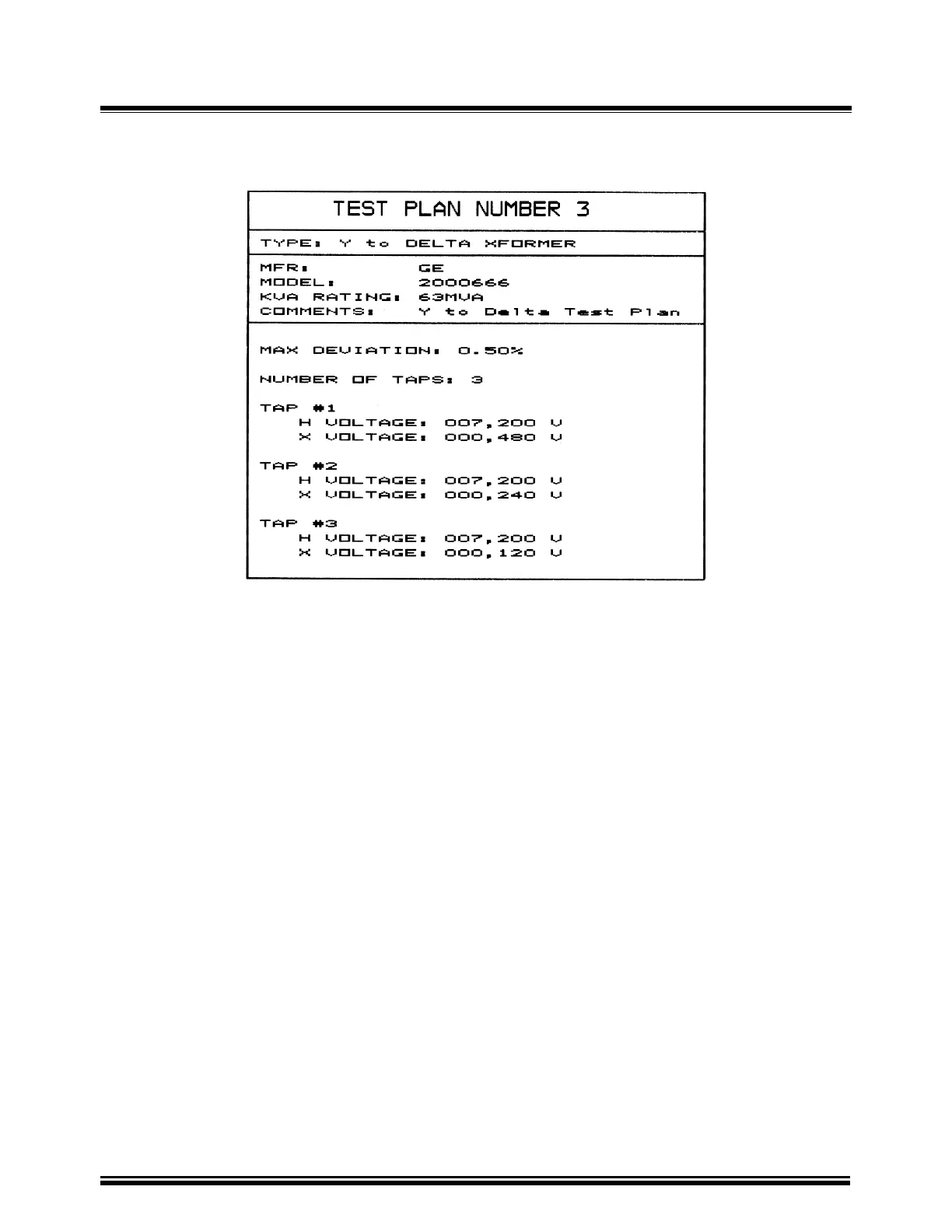 20-6. Typical Wye to Delta Test Plan Print Out