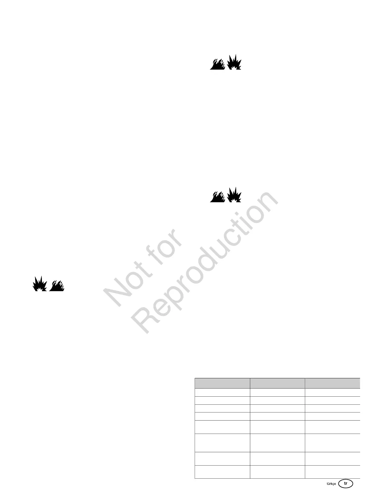 • Pilot ışıklar veya başka ateşleme kaynakları patlamalara yol açabileceği için