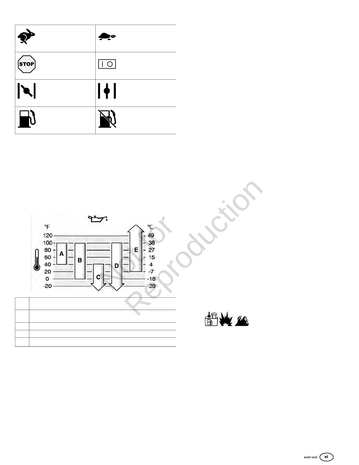 A SAE30– madalamal temperatuuril kui 40°F (4°C) on SAE30 õli kasutamisel