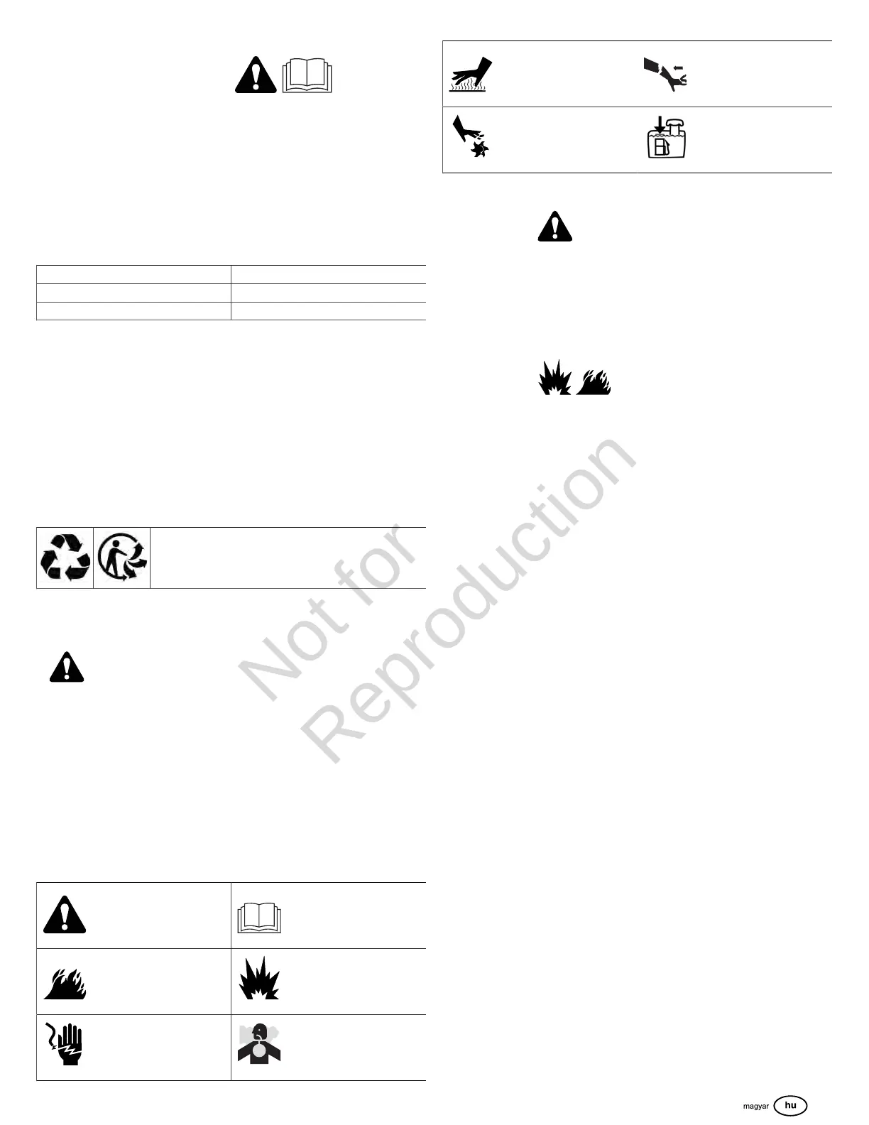 • Az üzemanyagot tartsa távol szikrától, nyílt lángtól, gyújtólángtól, hőtől és más