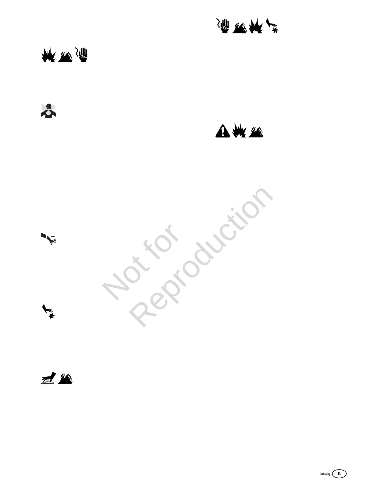 • Atviri dujų degikliai ar kiti uždegimo šaltiniai gali sukelti sprogimus, todėl degalus