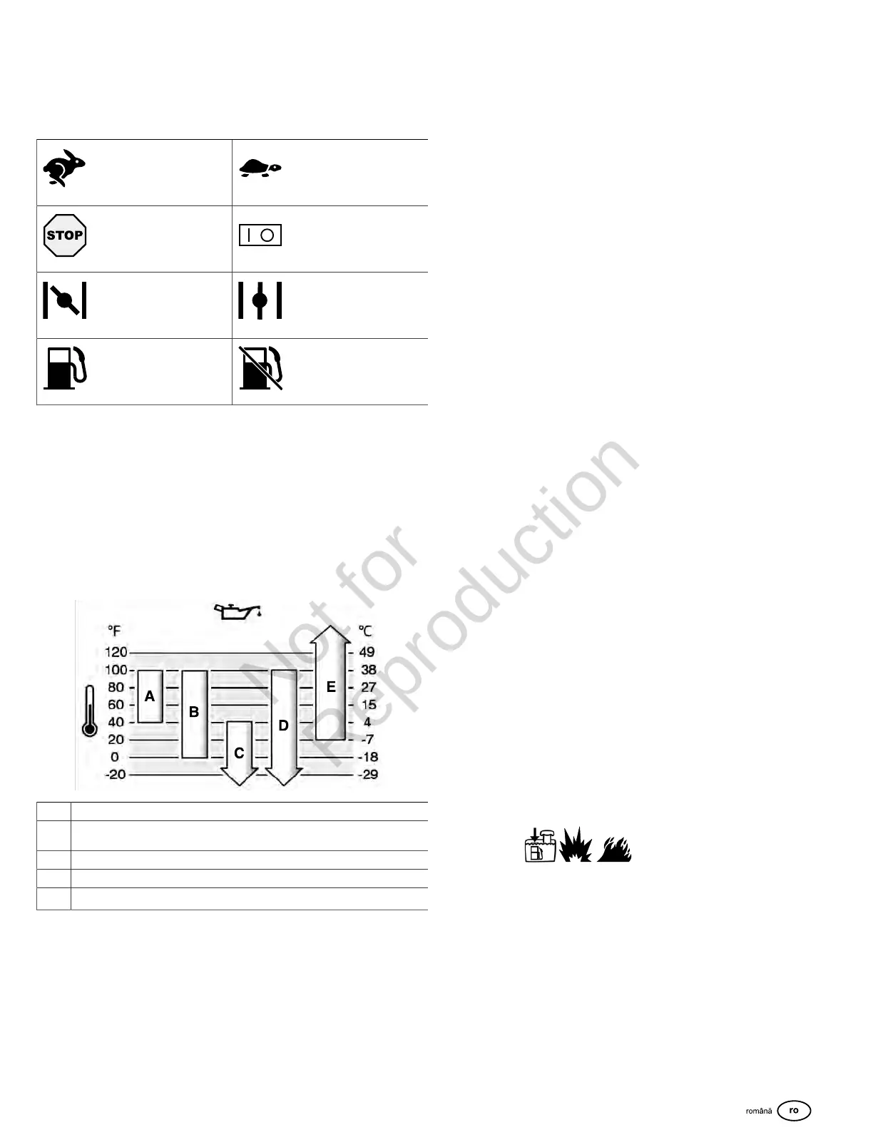 • Păstrați combustibilul la distanță față descântei, flăcări deschise, flăcări de
