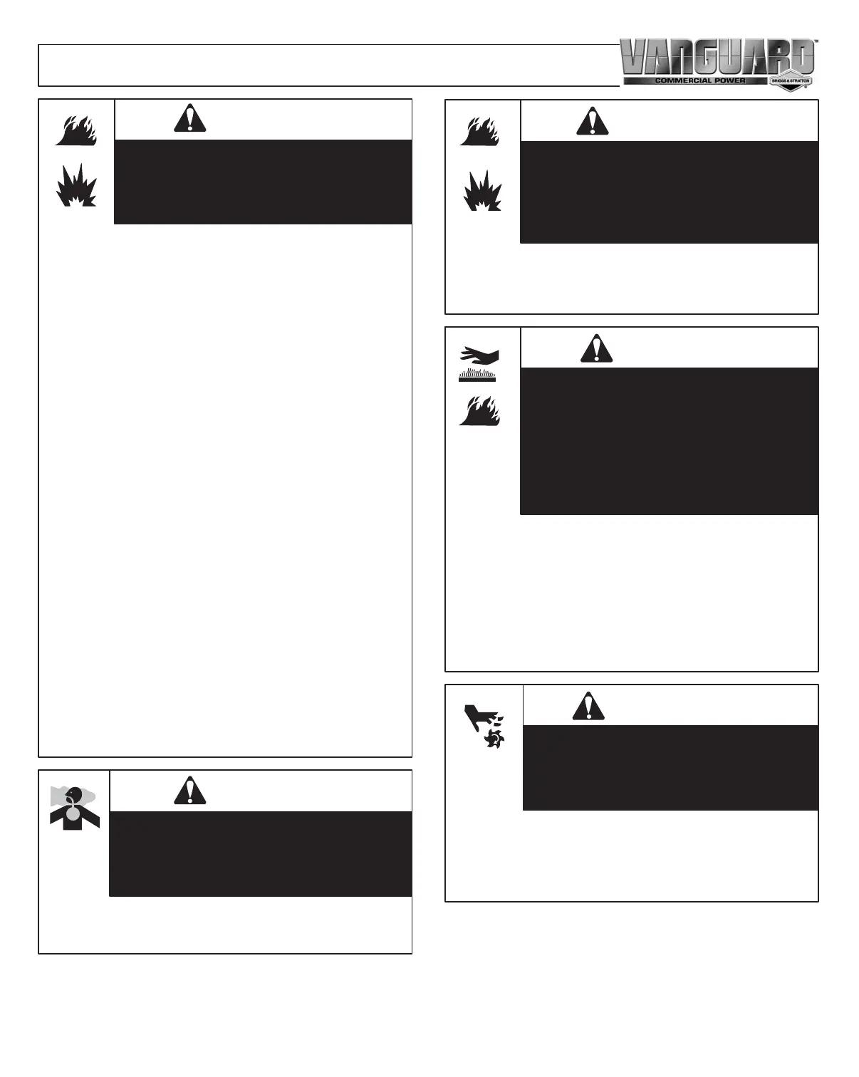 • Do not use pressurized starting fluids because vapors are