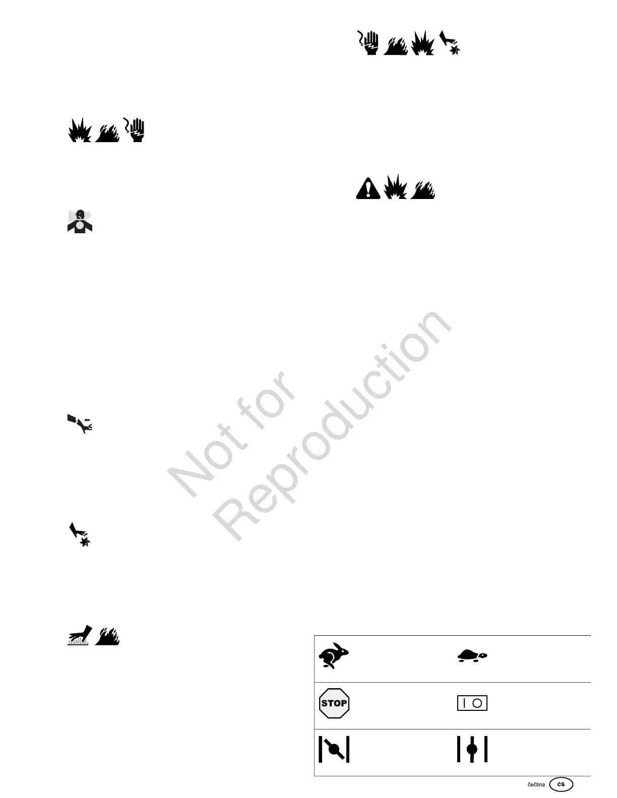 • Nepoužívejte stlačené startovací kapaliny, jejich páry jsou hořlavé.