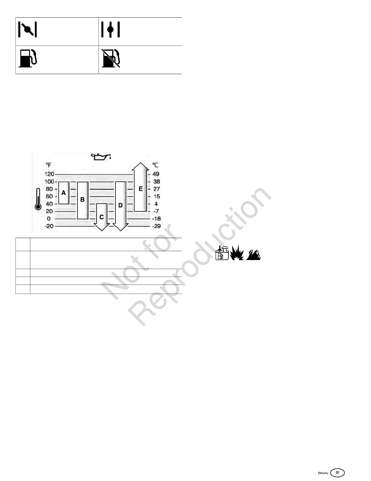 Nenaudokite nepatvirtinto tipo degalų, pvz., E15 ir E85. Nemaišykite benzino su alyva