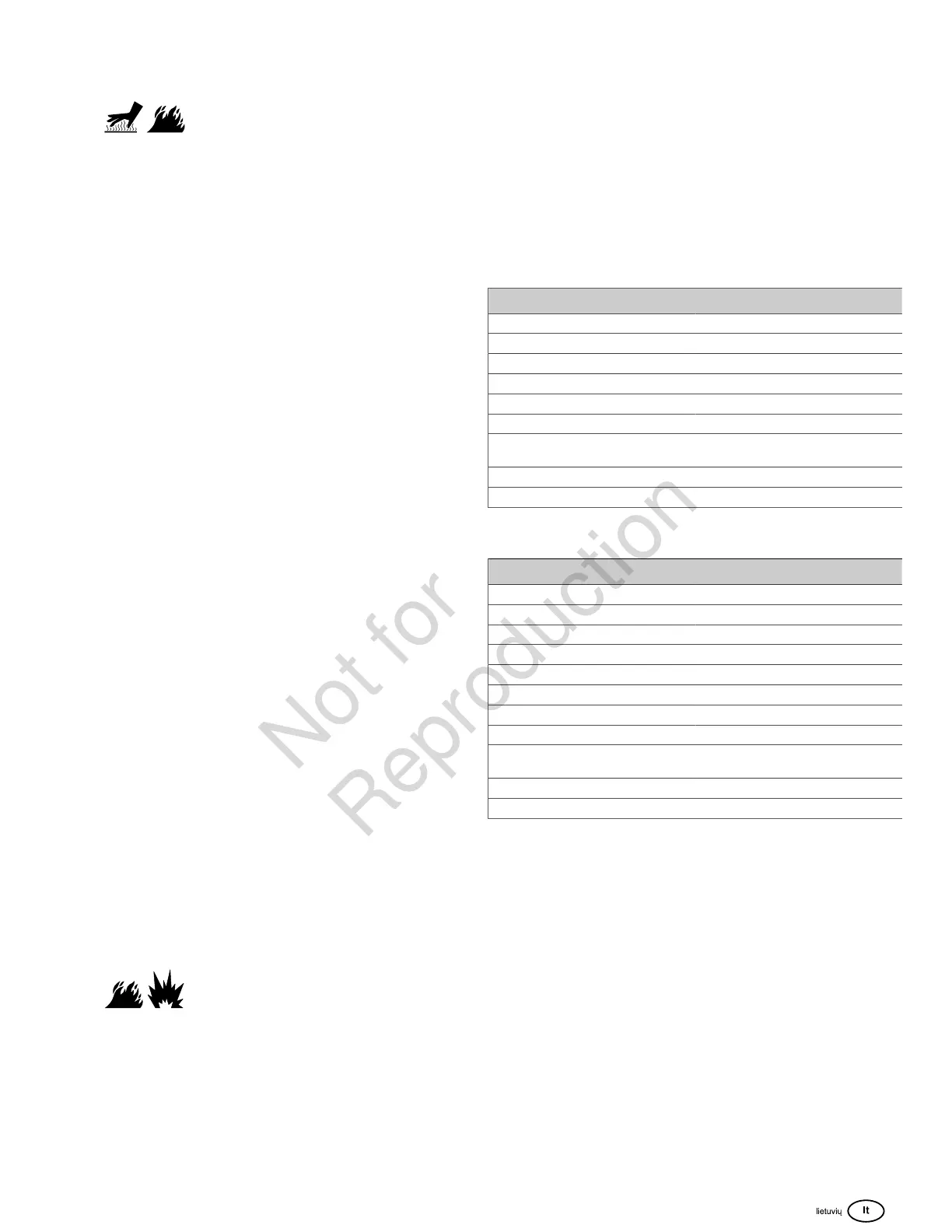 • Atviri dujų degikliai ar kiti uždegimo šaltiniai gali sukelti sprogimus, todėl degalus