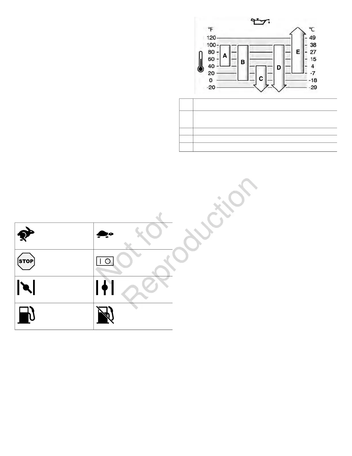 A SAE 30 - использование масла SAE 30 при температуре ниже 40°F (4°C)