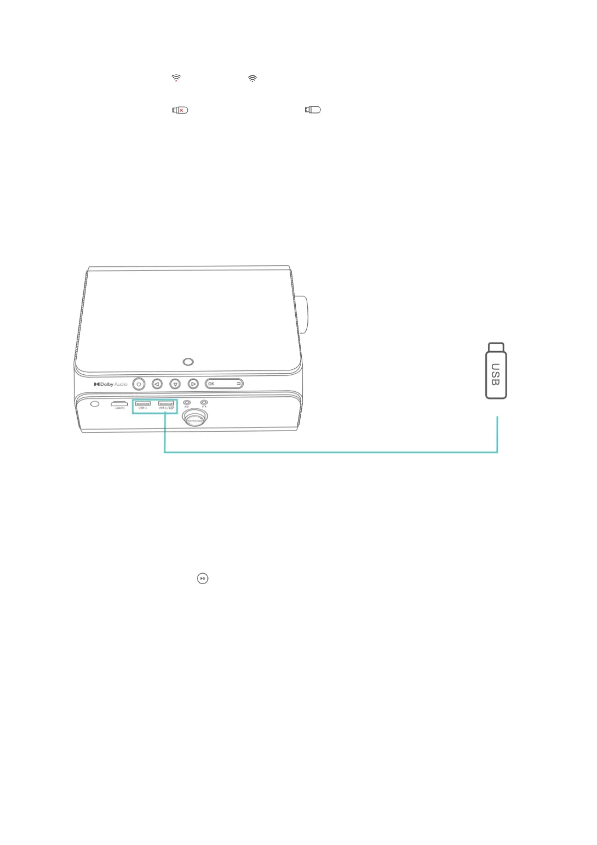 Schritt 1: Schalten Sie den Projektor ein und schließen Sie Ihre USB-Festplatte an den