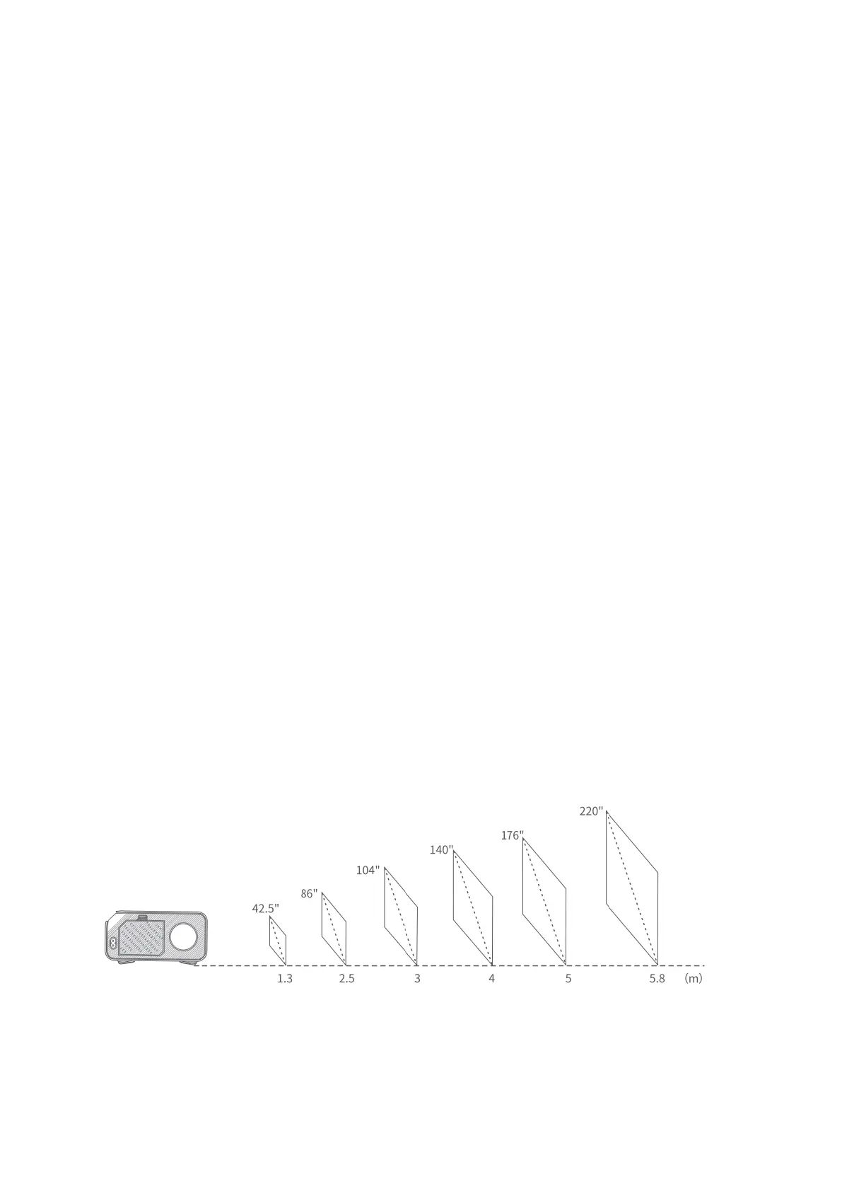 • Der empfohlene Projektionsabstand variiert je nach Projektionsinhalt. Bitte