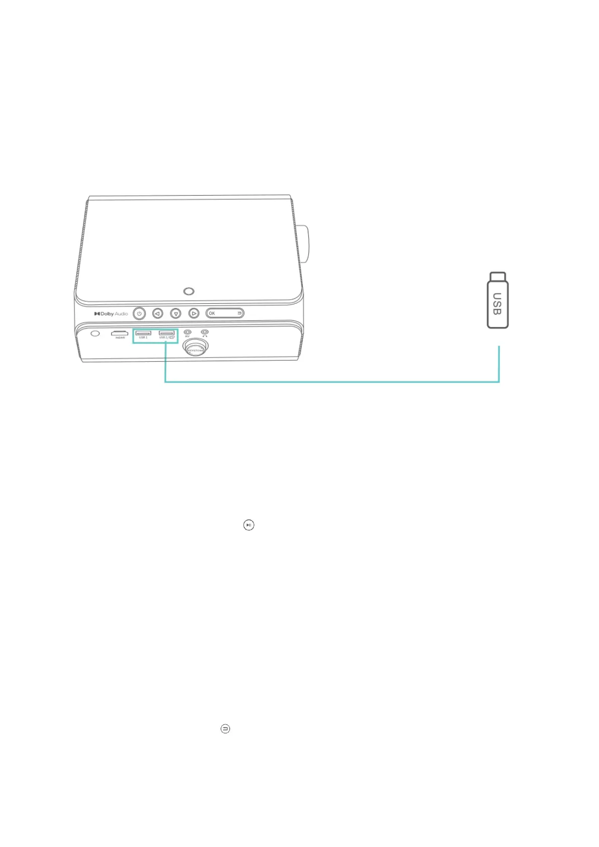 Krok 1: Zapněte projektor a vložte disk USB do portu USB 1/USB 2 projektoru.