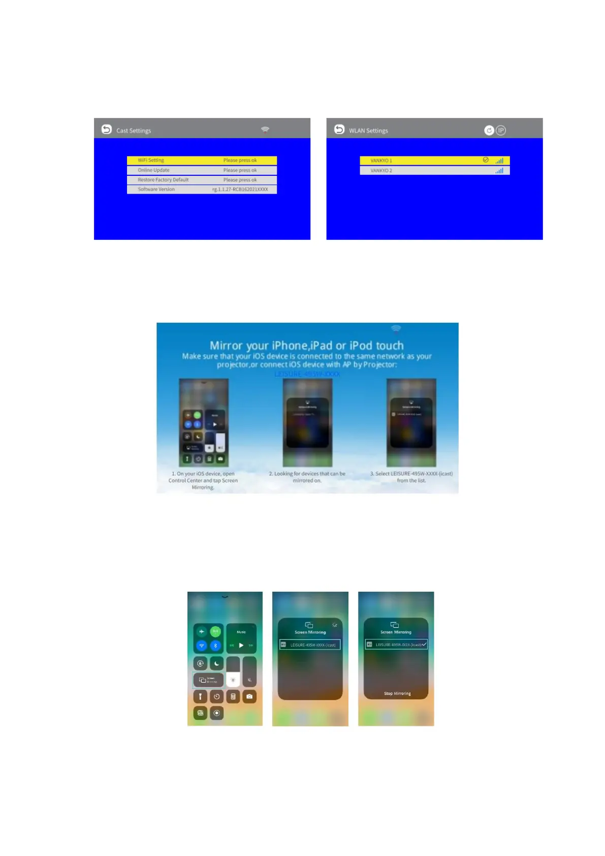 • Vraťte obrazovku zpět do rozhraní CAST a výběrem možnosti iOS Cast
