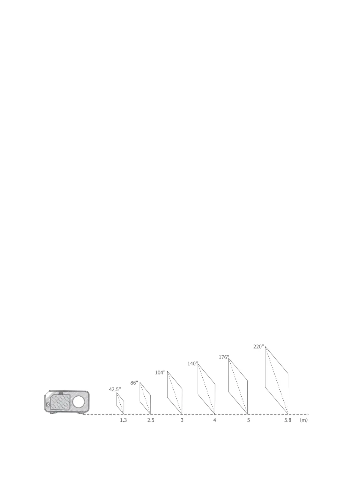 • Odporúčaná projekčná vzdialenosť sa líši v závislosti na obsahu projekcie. Podľa